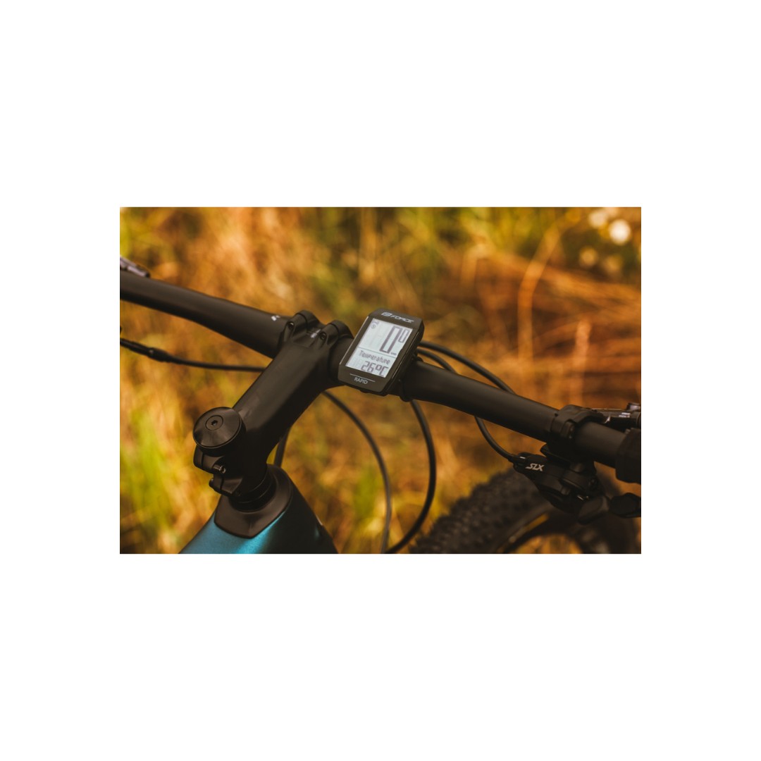 Force RAPID je bezdrôtový cyklopočítač s 15 funkciami, vodeodolnosťou IPX6, podsvietením a podporou dvoch kolies. Ponúka presné meranie rýchlosti, vzdialenosti, času aj teploty. Je ľahký, spoľahlivý a vhodný pre všetky typy bicyklov.