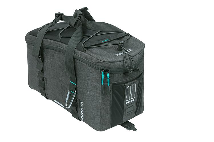 Basil Discovery 365D MIK je športová taška na vrch nosiča. Vrchný čierny melanž poťah je vyrobené z vodoodpudivého polyestru a má objem 9 litrov. Je vhodná pre dámy i pánov bicykel a obsahuje komfortné madlá. Taška má aj uzatváraciu chlopňu s elastickým vreckom a praktickou šnúrkou. Takto môžete mať veci na svojom mieste. Potrebujete viac miesta na fľaše? Nie je problém, pretože bočná strana tašky má ďalšie elastické vrecko.