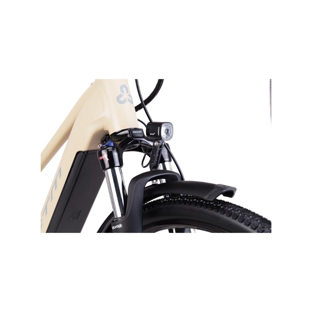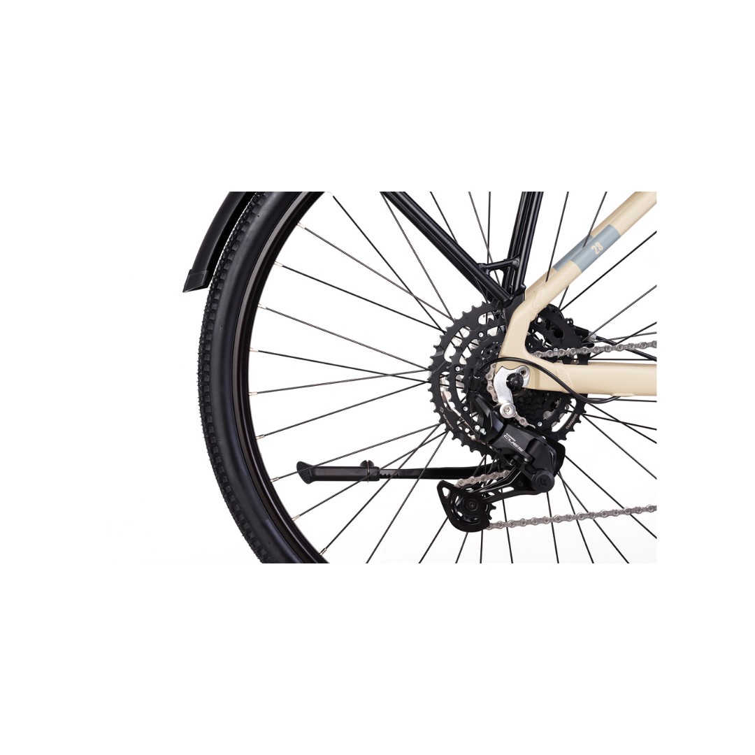 Pohon zabezpečuje spoľahlivá sada Shimano CUES s 9‑rýchlostným radením, ktorá je navrhnutá pre e‑biky a poskytuje presné a hladké radenie aj pri vyššej záťaži. Kolesá sú postavené na odolných ráfikoch WTB ST i23 TCS 2.0 a obuté do univerzálnych plášťov WTB Riddler 700×45C, ktoré sú ideálne na kombináciu asfaltu a ľahkého terénu.