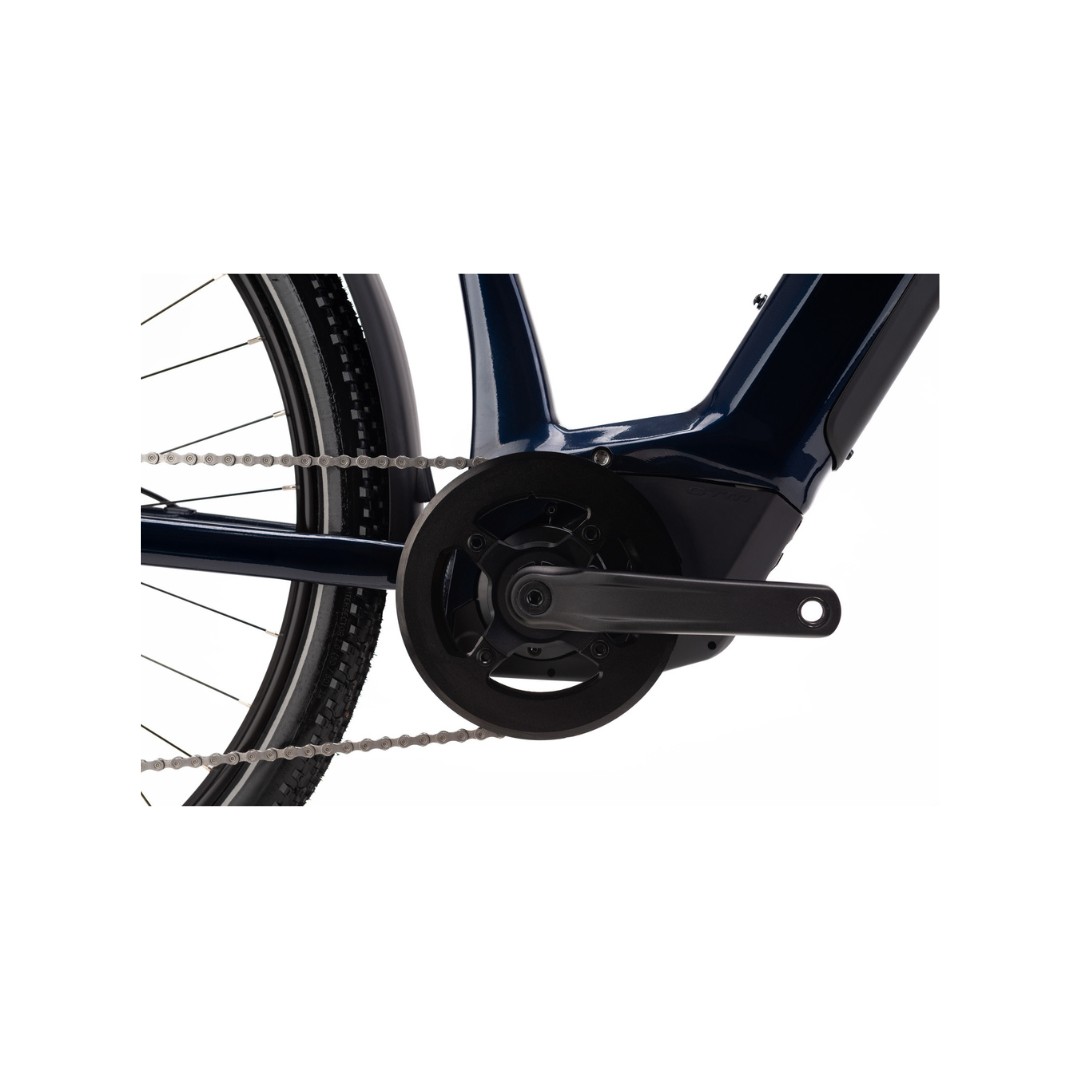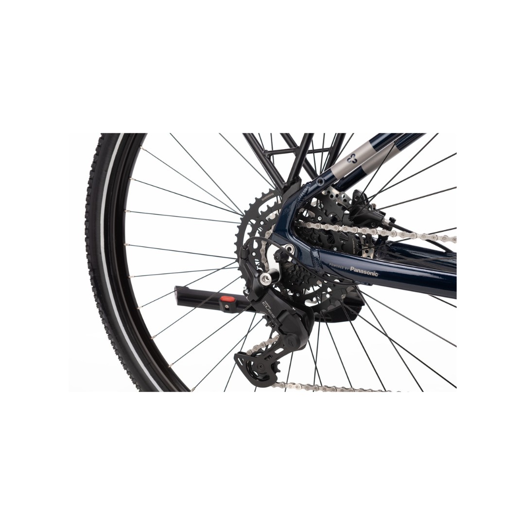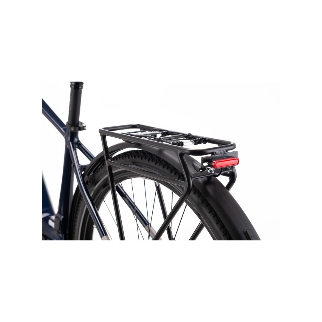 Jeho čistý, elegantný dizajn dopĺňa premyslená integrácia všetkých dôležitých prvkov – osvetlenia, blatníkov, zadného nosiča aj praktického stojana. Kabeláž je vedená kompletne vnútrom rámu, čo nielen zlepšuje estetiku, ale aj chráni káble pred poškodením a znižuje nároky na údržbu. Rám z hliníkovej zliatiny ALU 6061 s geometriou Easy Handling je stabilný, pohodlný a vhodný pre jazdcov, ktorí chcú istotu v každej situácii.