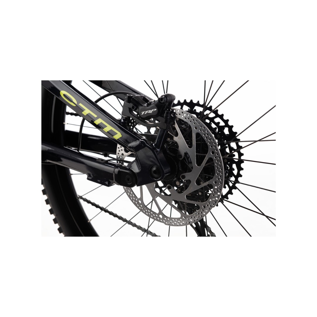 O bezpečné brzdenie sa starajú štvropiestové hydraulické brzdy TRP Slate EVO s veľkými 203 mm kotúčmi, ktoré poskytujú silný a konzistentný brzdný účinok aj pri dlhých zjazdoch.