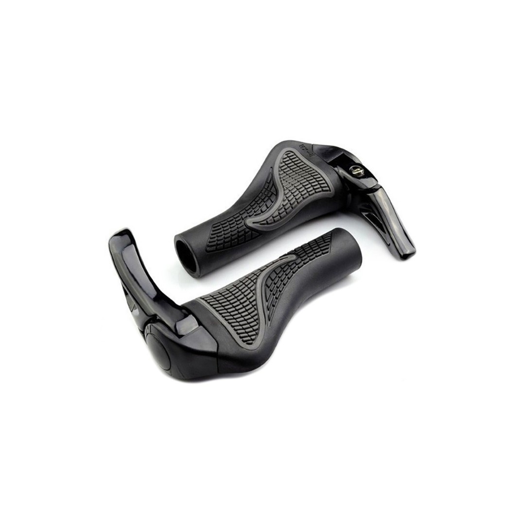 Na vnútornej strane sú gripy ukončené duralovou objímkou, ktorá zabezpečuje pevné uchytenie a zabraňuje posúvaniu rukoväte po riadidlách. Objímka je odolná, ľahká a spoľahlivá, čo zvyšuje celkovú stabilitu úchopu. Na vonkajšej strane sa nachádza duralový roh, ktorý slúži ako pevné zakončenie rukoväte a zároveň poskytuje alternatívny úchop pri stúpaniach alebo dlhých rovinách. Rohy majú individuálne nastaviteľný sklon, čo umožňuje prispôsobiť si ich presne podľa preferencií jazdca.