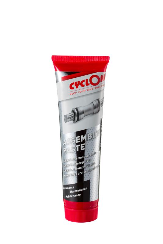 CyclOn Assembly Paste je keramická montážna pasta. Špeciálna štruktúra pasty zaisťuje dokonalé spojenie závitových kovových častí. Montážna pasta CyclOn zabraňuje treniu kov na kov a poskytuje im vodotesnú ochranu, čím zabraňuje prípadnému vŕzganiu a škrípaniu. S montážnou pastou CyclOn môžete ľahko spojiť závitové diely. Montážnu pastu môžete použiť na závity pedálov, prehadzovačov, skrutiek a iných častí na bicykli, kde dochádza k spojeniu kovu s kovom. Vďaka montážnej paste sú diely chránené pred vlhkosťou a pri veľkom tlaku nevydávajú nepríjemne zvuky. Predídete tiež zbytočnému opotrebovaniu dielov.