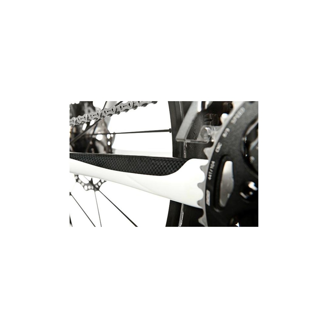 Jedným z najatraktívnejších prvkov tohto modelu je jeho reálny karbónový povrch. Nálepky nielen chránia, ale zároveň dodávajú bicyklu športový, moderný a prémiový vzhľad. Karbónová textúra pôsobí elegantne a perfektne ladí s väčšinou rámov, najmä s tými, ktoré majú karbónový alebo tmavý dizajn.
