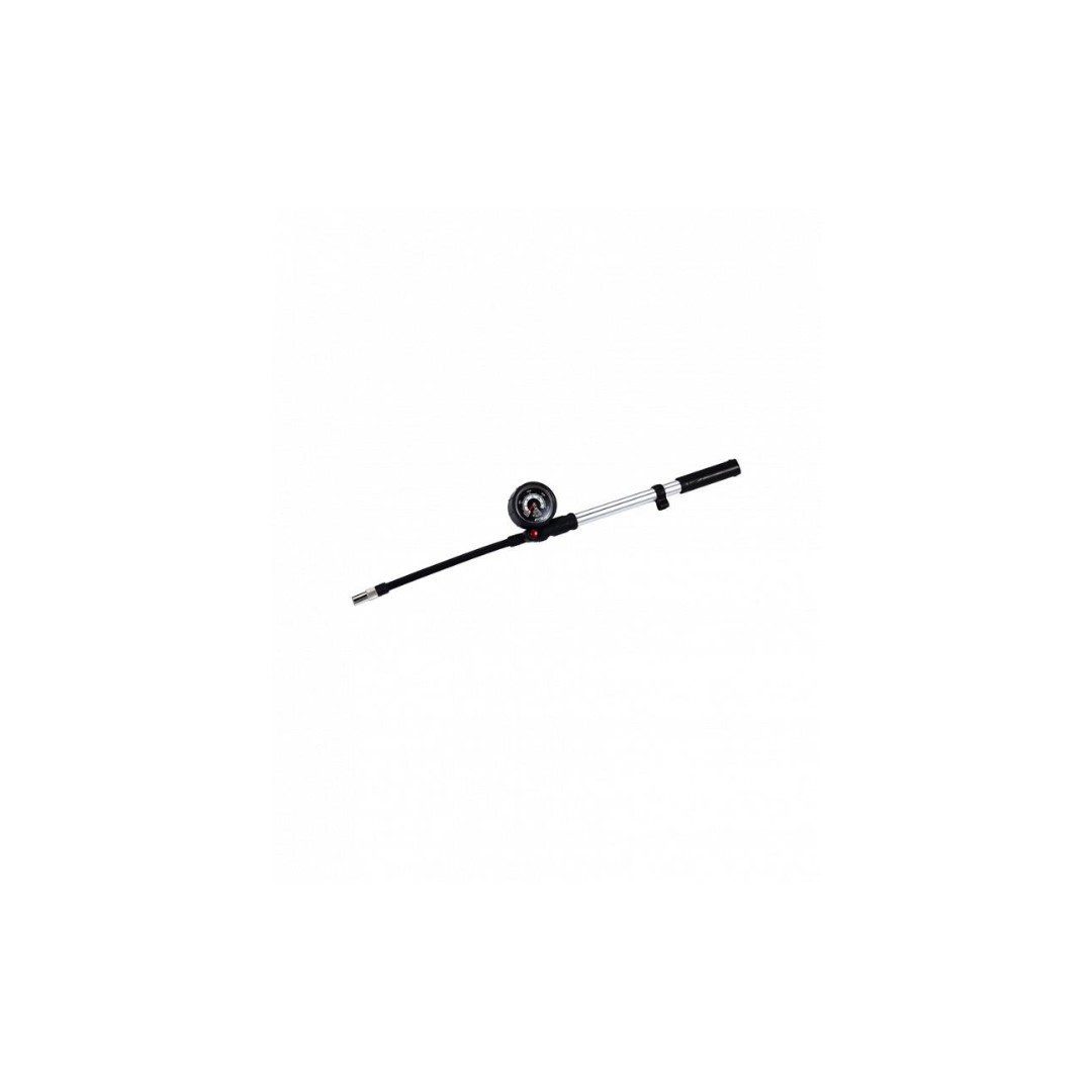 Pumpa je vybavená presným 1,5-palcovým analógovým tlakomermi, ktorý je chránený gumovým krytom. Tento kryt chráni tlakomer pred nárazmi, poškriabaním a bežným opotrebovaním, čo predlžuje životnosť pumpy a zaručuje spoľahlivé meranie aj po rokoch používania. Analógový ukazovateľ je prehľadný, ľahko čitateľný a umožňuje presné nastavenie tlaku aj v teréne.
