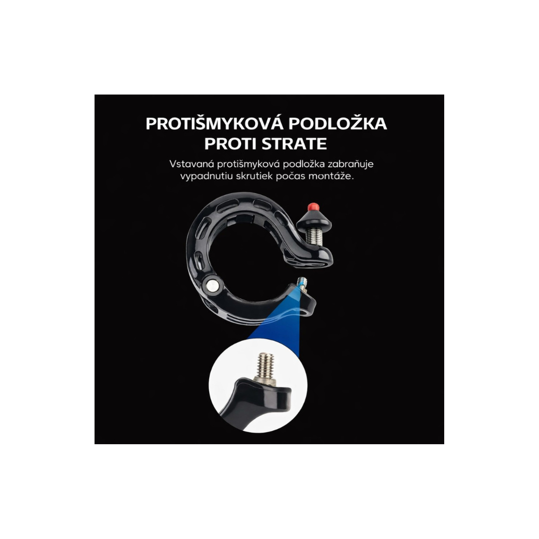 Súčasťou balenia sú dve vložky pre riadidlá s priemerom 22,2 až 25,4 mm, čo zabezpečuje širokú kompatibilitu s väčšinou bežných riadidiel. Montáž je rýchla, jednoduchá a stabilná – zvonček pevne drží aj pri jazde v teréne alebo na nerovných cestách.