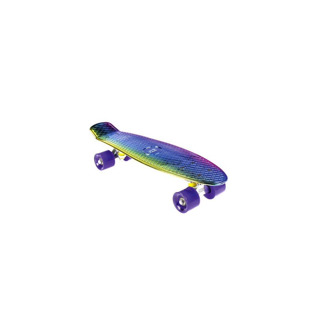 Pennyboard ELEKTROSTYLE RAINBOW pre milovníkov farieb a zábavy. je vyrobený z plastu typu polypropylénu PP. Použitím tohto typu materiálu má za následok veľkú silu skateboardu, väčšie než u bežných skateboardov z preglejky. Horná strana je vo forme mriežky, zabraňuje skĺznutiu. Vďaka malej veľkosti sa zmestí aj do tašky, batohu.