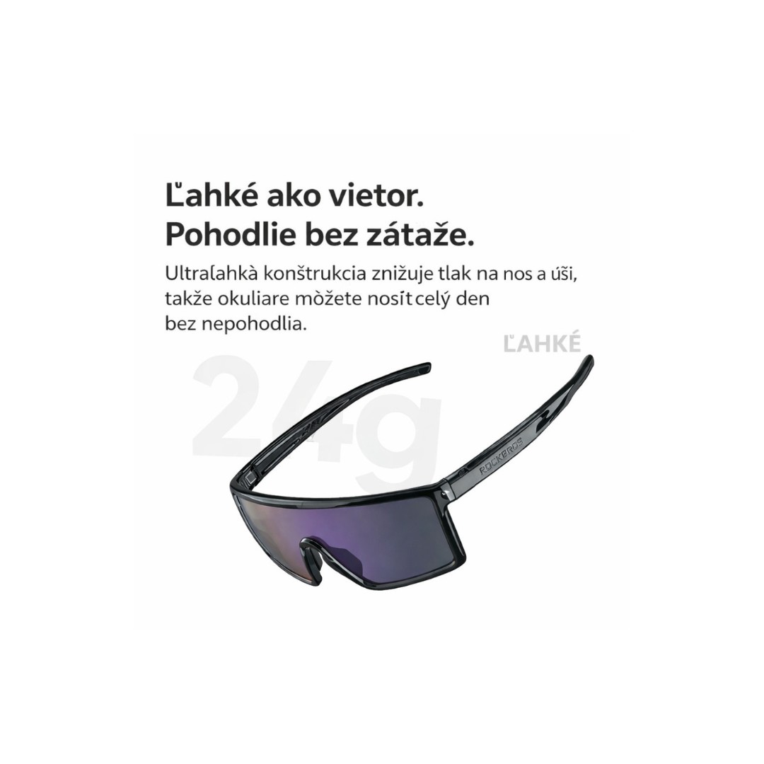 Okuliare RockBros® čierne sú moderným športovým doplnkom navrhnutým pre používateľov, ktorí hľadajú spoľahlivú ochranu očí, vysoký vizuálny komfort a univerzálny dizajn vhodný na šport aj bežné nosenie.