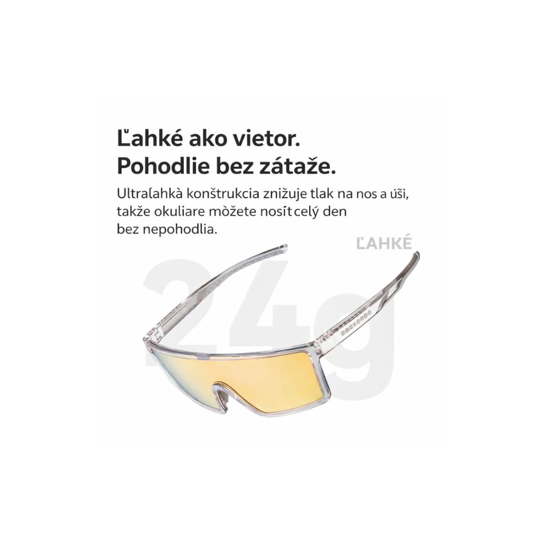 Okuliare RockBros® TRANSPARENTNÉ sú moderným a funkčným riešením pre športovcov aj rekreačných používateľov, ktorí hľadajú spoľahlivú ochranu očí, vysoký vizuálny komfort a nízku hmotnosť pri každodennom používaní.